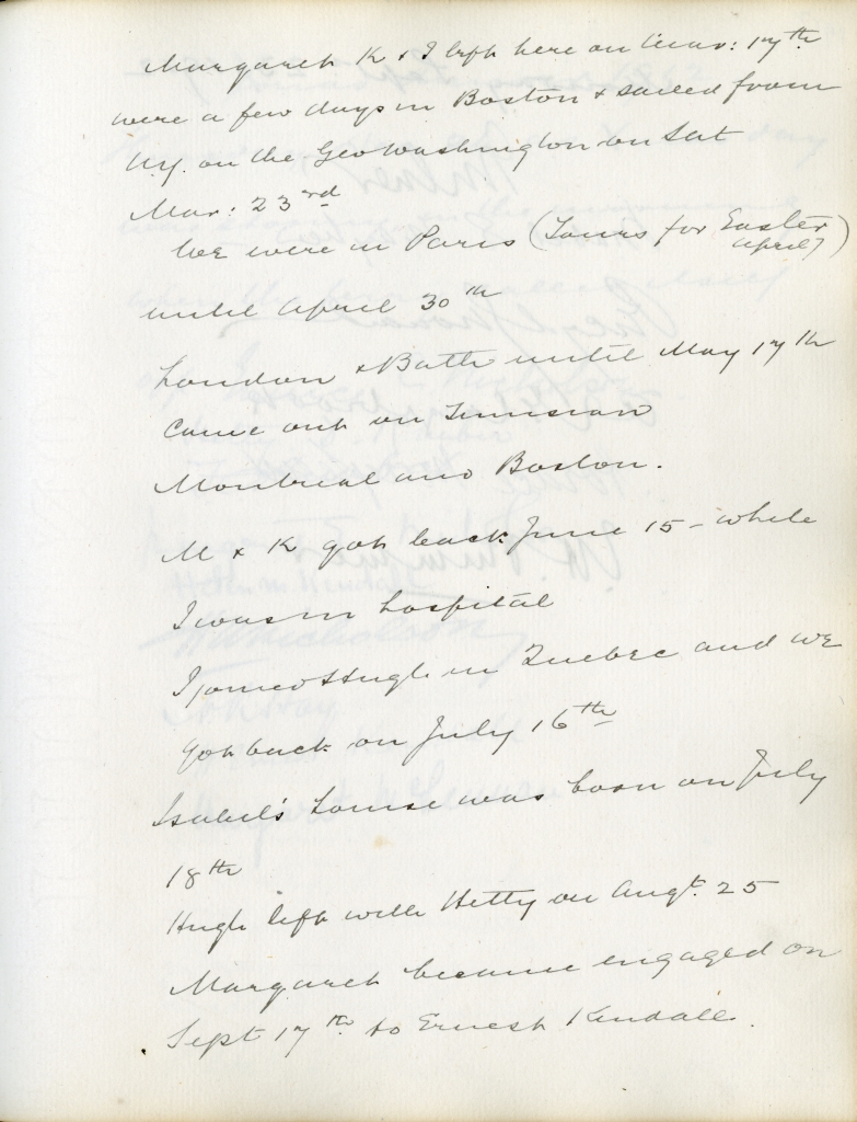 Other notable pages in the guestbook include Isabel's wedding (page 106), the tragic death of Louise McLennan in 1912 (page 109), Margaret's wedding to future Lieutenant-Governor, Dr. Henry Ernest Kendall (page 113), the deaths of both son Hugh and J.S.'s brother Bart in battle during World War I (page 126). J.S. McLennan's death is noted in an elegant tribute written by Katharine on page 162.