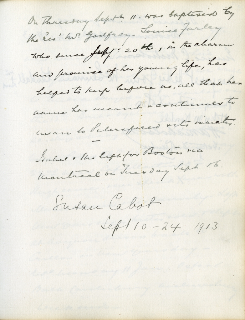 Other notable pages in the guestbook include Isabel's wedding (page 106), the tragic death of Louise McLennan in 1912 (page 109), Margaret's wedding to future Lieutenant-Governor, Dr. Henry Ernest Kendall (page 113), the deaths of both son Hugh and J.S.'s brother Bart in battle during World War I (page 126). J.S. McLennan's death is noted in an elegant tribute written by Katharine on page 162.