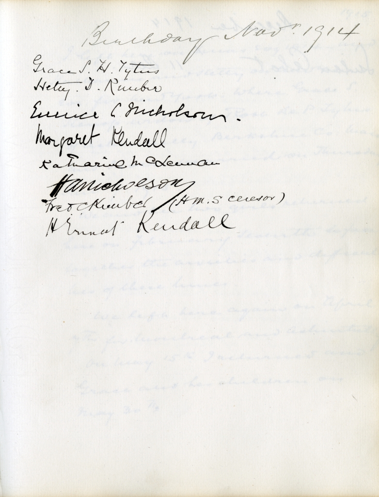Item is the guestbook that was used at the Petersfield Estate, and later by Katharine at events on her home on Whitney Avenue, Sydney. In fact, Petersfield is most famous and historically interesting because of the guests who stayed there. Besides frequent local visitors like Hetty Kimber and her brother Fred, Shirley Davidson, the Burchells, the Sutherlands, the Grosvenors and visiting family members, the estate boasted visitors of international renown.