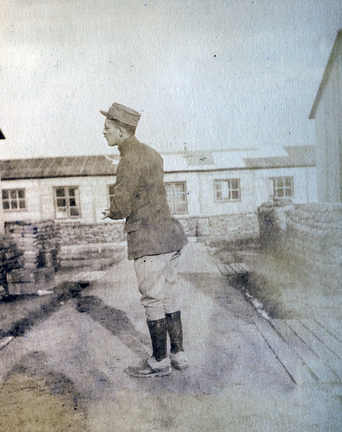 Item is a photographic portrait of French soldier Sergeant Asinimann. The photo is part of a series of portraits photographed by Katharine McLennan of the men whom she served and cared for during her time as a volunteer nurse in WWI.