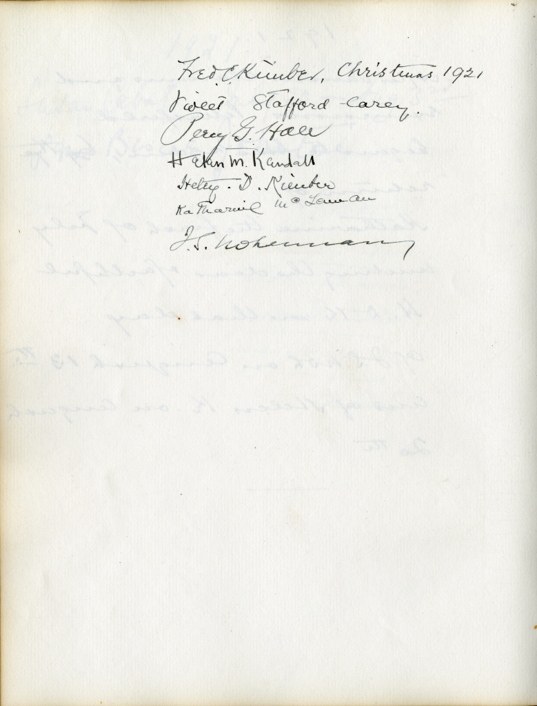 Item is the guestbook that was used at the Petersfield Estate, and later by Katharine at events on her home on Whitney Avenue, Sydney. In fact, Petersfield is most famous and historically interesting because of the guests who stayed there. Besides frequent local visitors like Hetty Kimber and her brother Fred, Shirley Davidson, the Burchells, the Sutherlands, the Grosvenors and visiting family members, the estate boasted visitors of international renown.