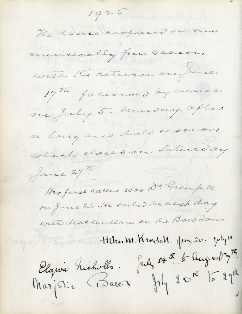 Prime Minister Robert Borden and future Prime Minister Arthur Meighen visited Petersfield in 1911 and 1914 respectively. British Prime Minister Ramsay MacDonald also paid a call on J.S. at Petersfield (page 149). Governors-General Byng (page 137), Wellington, and Tweedsmuir all visited Petersfield. Lord and Lady Baden-Powell stayed at Petersfield and Katharine subsequently became very involved with the Guiding movement in Cape Breton. The poet, Sir Charles G.D. Roberts and the musical group the Hart House Quartet (pages 150, 153) were guests. Canadian historians D.C. Harvey and J.C. Webster, along with aviation engineer Frederick Walker "Casey" Baldwin (pages 146, 136) were honoured guests. Lord Grey and Admiral and Lady Kingsmill visited J.S. at Petersfield. Another famous visitor was Sir Wilfred Grenfell of the Grenfell Mission of Labrador who was a favorite of Katharine's.