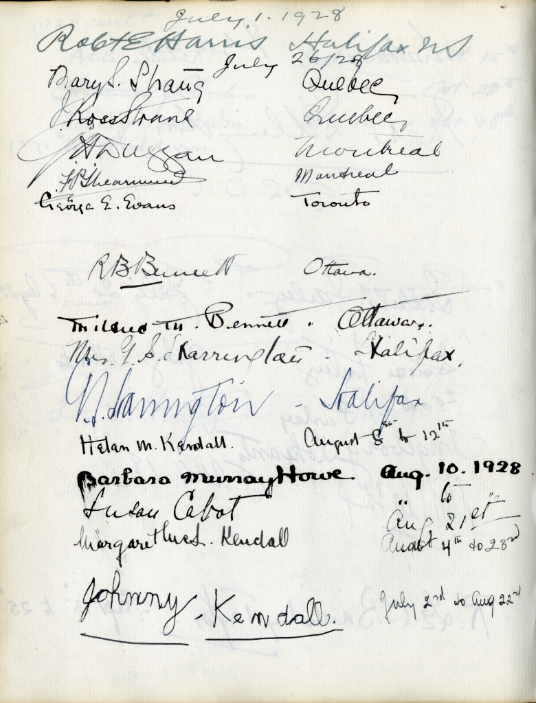 Prime Minister Robert Borden and future Prime Minister Arthur Meighen visited Petersfield in 1911 and 1914 respectively. British Prime Minister Ramsay MacDonald also paid a call on J.S. at Petersfield (page 149). Governors-General Byng (page 137), Wellington, and Tweedsmuir all visited Petersfield. Lord and Lady Baden-Powell stayed at Petersfield and Katharine subsequently became very involved with the Guiding movement in Cape Breton. The poet, Sir Charles G.D. Roberts and the musical group the Hart House Quartet (pages 150, 153) were guests. Canadian historians D.C. Harvey and J.C. Webster, along with aviation engineer Frederick Walker "Casey" Baldwin (pages 146, 136) were honoured guests. Lord Grey and Admiral and Lady Kingsmill visited J.S. at Petersfield. Another famous visitor was Sir Wilfred Grenfell of the Grenfell Mission of Labrador who was a favorite of Katharine's.