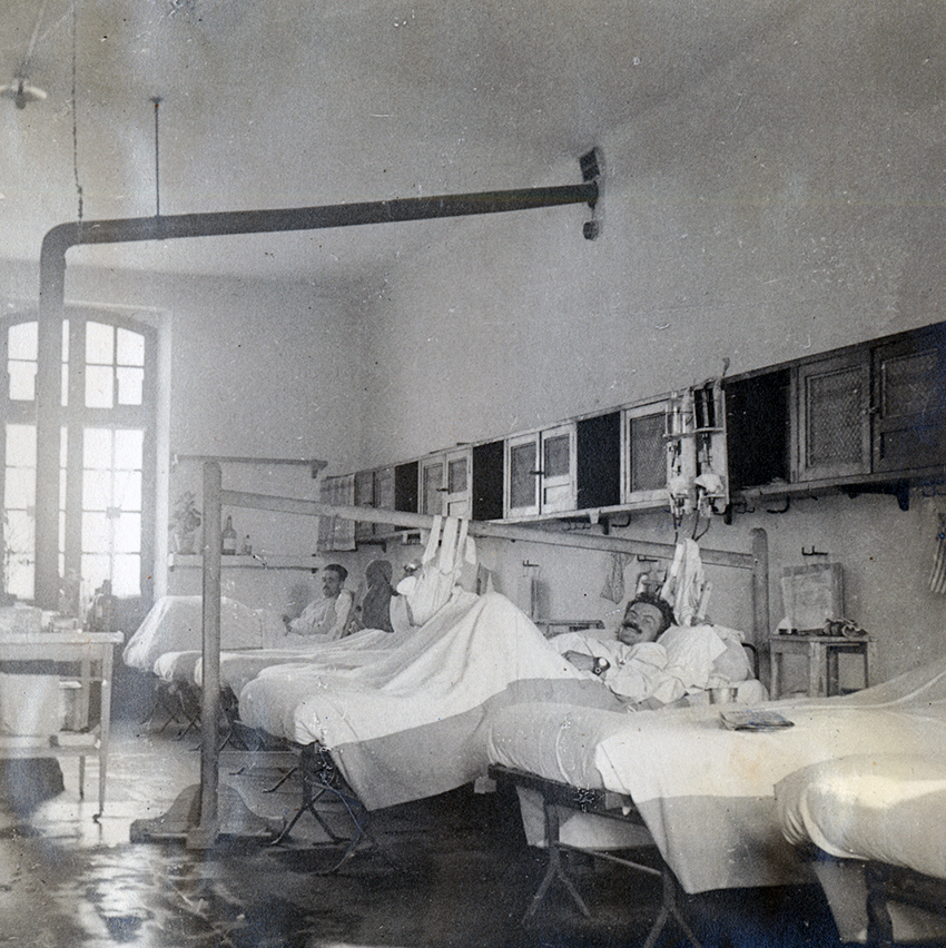 Item is a photograph of patients in a ward at the hospital in Pontoise, France.