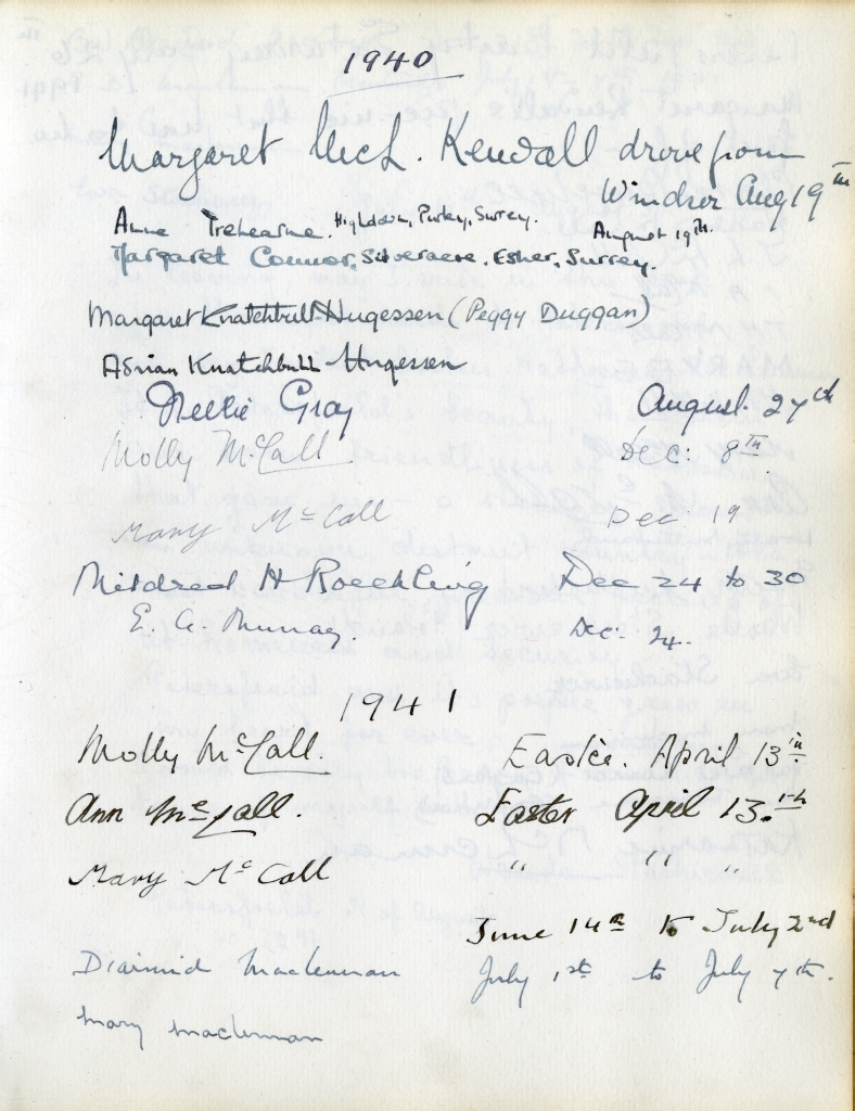 Item is the guestbook that was used at the Petersfield Estate, and later by Katharine at events on her home on Whitney Avenue, Sydney. In fact, Petersfield is most famous and historically interesting because of the guests who stayed there. Besides frequent local visitors like Hetty Kimber and her brother Fred, Shirley Davidson, the Burchells, the Sutherlands, the Grosvenors and visiting family members, the estate boasted visitors of international renown.