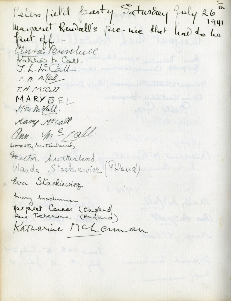 Item is the guestbook that was used at the Petersfield Estate, and later by Katharine at events on her home on Whitney Avenue, Sydney. In fact, Petersfield is most famous and historically interesting because of the guests who stayed there. Besides frequent local visitors like Hetty Kimber and her brother Fred, Shirley Davidson, the Burchells, the Sutherlands, the Grosvenors and visiting family members, the estate boasted visitors of international renown.