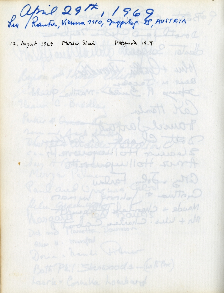 Item is the guestbook that was used at the Petersfield Estate, and later by Katharine at events on her home on Whitney Avenue, Sydney. In fact, Petersfield is most famous and historically interesting because of the guests who stayed there. Besides frequent local visitors like Hetty Kimber and her brother Fred, Shirley Davidson, the Burchells, the Sutherlands, the Grosvenors and visiting family members, the estate boasted visitors of international renown.