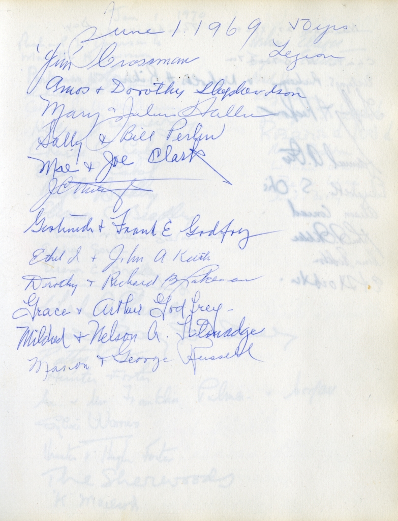 Item is the guestbook that was used at the Petersfield Estate, and later by Katharine at events on her home on Whitney Avenue, Sydney. In fact, Petersfield is most famous and historically interesting because of the guests who stayed there. Besides frequent local visitors like Hetty Kimber and her brother Fred, Shirley Davidson, the Burchells, the Sutherlands, the Grosvenors and visiting family members, the estate boasted visitors of international renown.