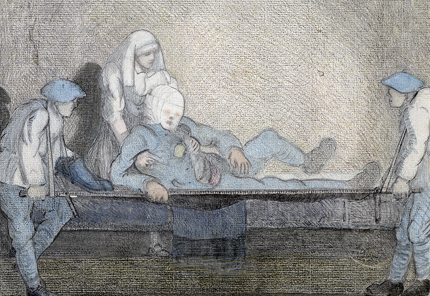 Scope and Content: Item is a drawing by Katharine McLennan entitled Blessé de face, created in November 1917 at HOE18 (l'Hôpital d'Évacuation no. 18) in Vasseny, France where she served as a nurse's aide during WWI.
