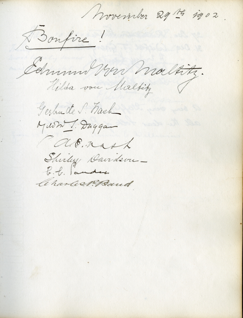 Item is the guestbook that was used at the Petersfield Estate, and later by Katharine at events on her home on Whitney Avenue, Sydney. In fact, Petersfield is most famous and historically interesting because of the guests who stayed there. Besides frequent local visitors like Hetty Kimber and her brother Fred, Shirley Davidson, the Burchells, the Sutherlands, the Grosvenors and visiting family members, the estate boasted visitors of international renown.