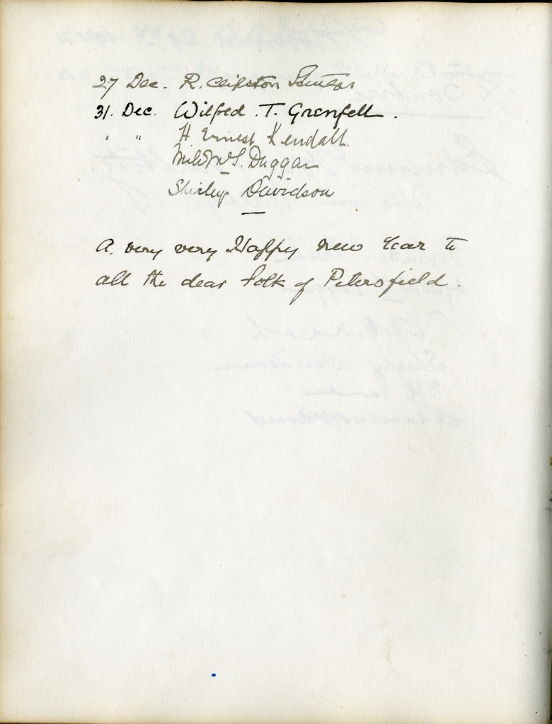 Item is the guestbook that was used at the Petersfield Estate, and later by Katharine at events on her home on Whitney Avenue, Sydney. In fact, Petersfield is most famous and historically interesting because of the guests who stayed there. Besides frequent local visitors like Hetty Kimber and her brother Fred, Shirley Davidson, the Burchells, the Sutherlands, the Grosvenors and visiting family members, the estate boasted visitors of international renown.