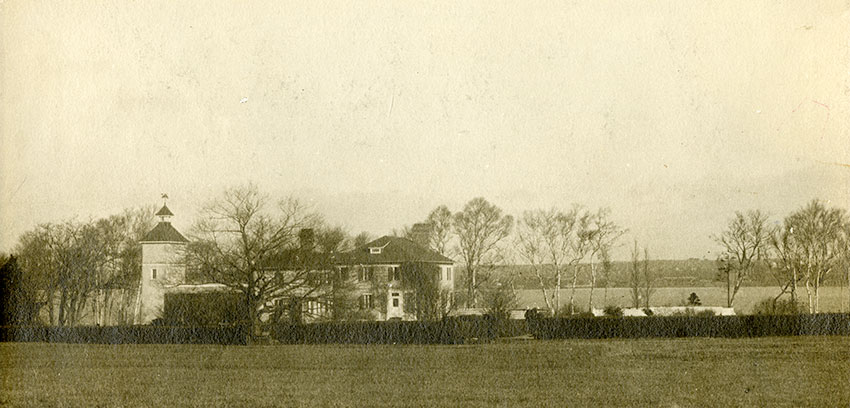 Item is a photograph of the Petersfield estate with Sydney Harbour visible in the background. The grounds and gardens at Petersfield were magnificent. It was Louise's creative and artistic eye that made Petersfield a landscape that was remembered for many years by its visitors. She introduced new plants and flowers to the area, including many rare species not often found in Nova Scotia.
