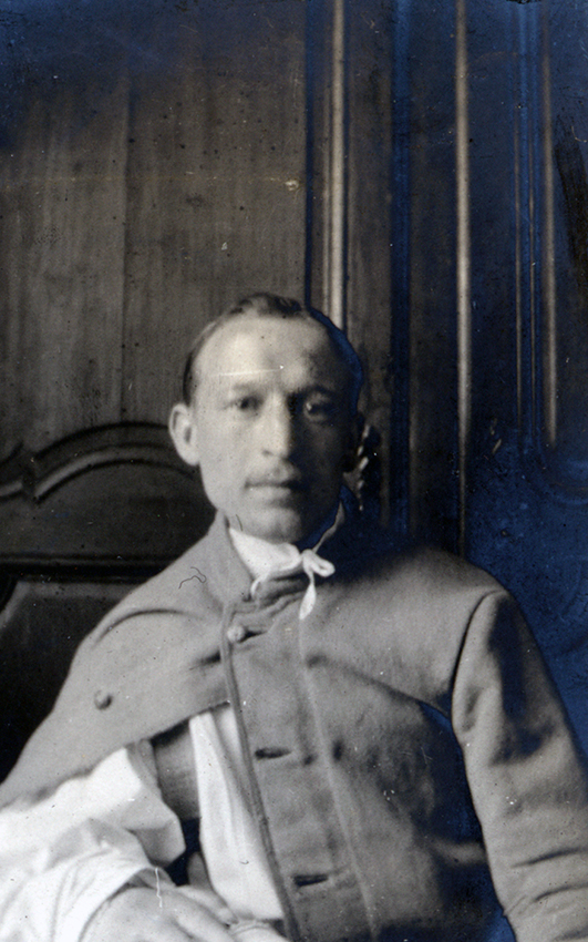 Item is a photographic portrait of French soldier Gardinal which was taken during his time at the Hôpital Auxiliaire in Pont-Audemer, France. Katharine McLennan took a series of portraits of the men whom she served and cared for during her time as a volunteer nurse in WWI.