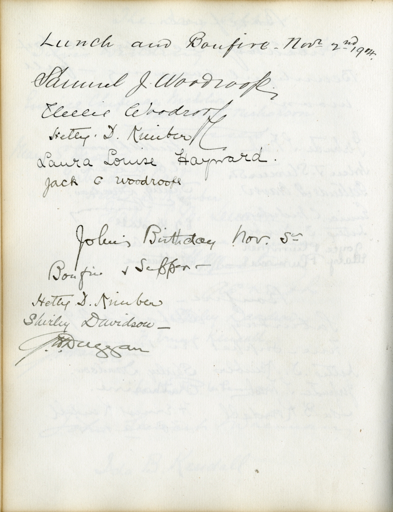 Item is the guestbook that was used at the Petersfield Estate, and later by Katharine at events on her home on Whitney Avenue, Sydney. In fact, Petersfield is most famous and historically interesting because of the guests who stayed there. Besides frequent local visitors like Hetty Kimber and her brother Fred, Shirley Davidson, the Burchells, the Sutherlands, the Grosvenors and visiting family members, the estate boasted visitors of international renown.