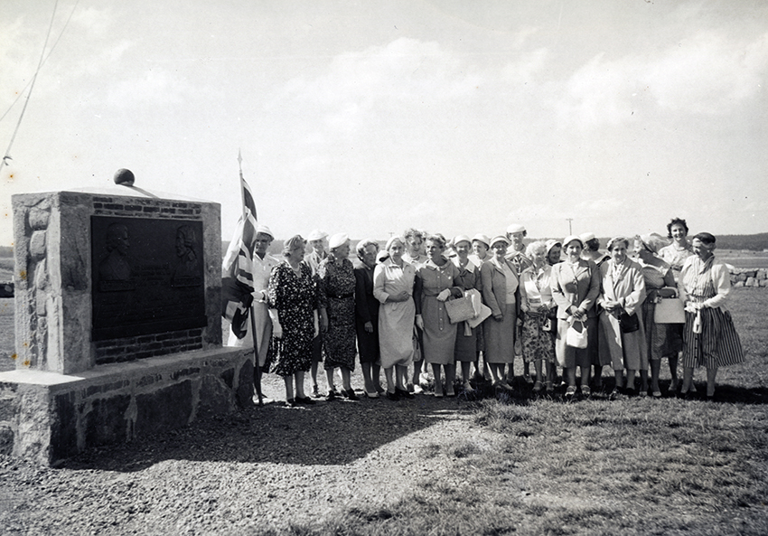 Item is a photograph of the Louisbourg chapter of the IODE posing with the plaque that they erected in commemoration of the 200th anniversary of the end of the second siege of Louisbourg.