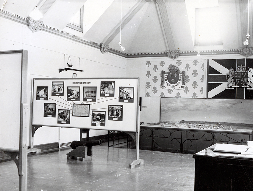 Item is a photograph of the interior of the Museum showing the model of the Fortress and the temporary display about the King's Bastion.