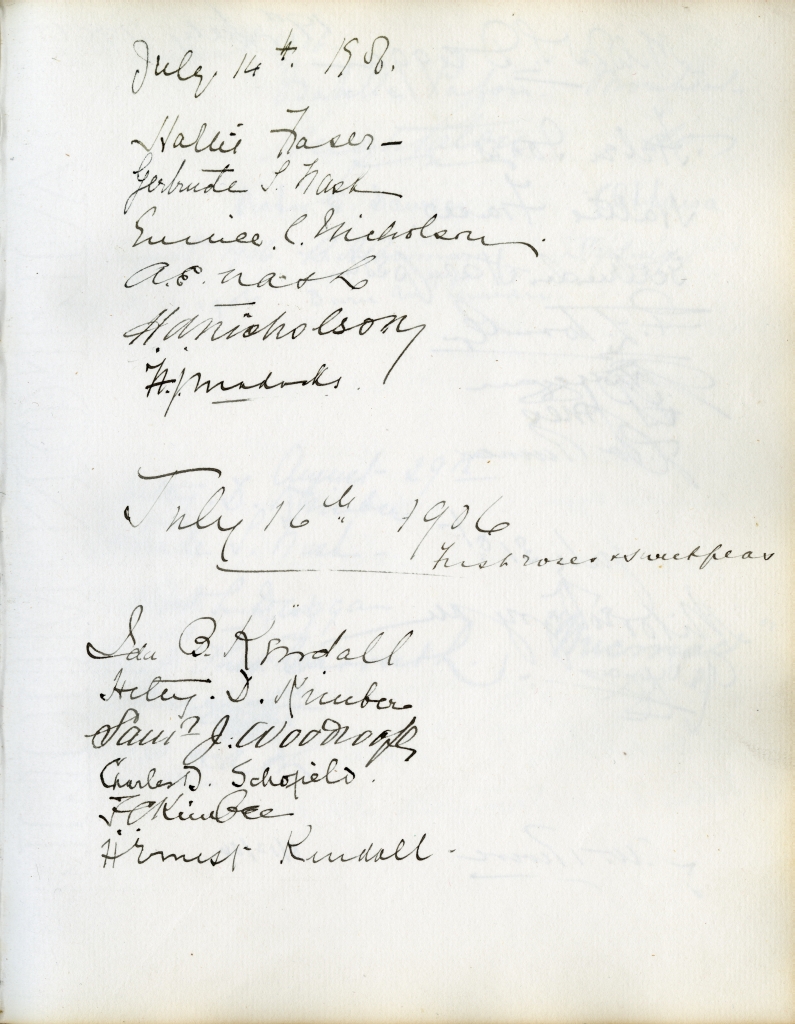 Item is the guestbook that was used at the Petersfield Estate, and later by Katharine at events on her home on Whitney Avenue, Sydney. In fact, Petersfield is most famous and historically interesting because of the guests who stayed there. Besides frequent local visitors like Hetty Kimber and her brother Fred, Shirley Davidson, the Burchells, the Sutherlands, the Grosvenors and visiting family members, the estate boasted visitors of international renown.