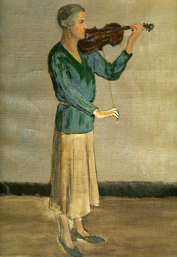Item is a painted self-portrait of Katharine McLennan playing the violin. Katharine began studies in art as a girl during visits to France and continued to use her gift, which she shared with her mother, Louise, for all of her life.