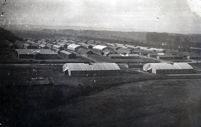 Item is an aerial photograph of the general view of the H.O.E. 18, S.P. 118 in Vasseny, France, where Katharine McLennan served as a Red Cross nursing volunteer from October 1917 until the Spring of 1918.