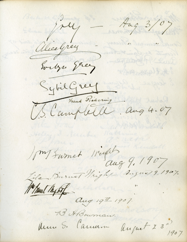 Item is the guestbook that was used at the Petersfield Estate, and later by Katharine at events on her home on Whitney Avenue, Sydney. In fact, Petersfield is most famous and historically interesting because of the guests who stayed there. Besides frequent local visitors like Hetty Kimber and her brother Fred, Shirley Davidson, the Burchells, the Sutherlands, the Grosvenors and visiting family members, the estate boasted visitors of international renown.