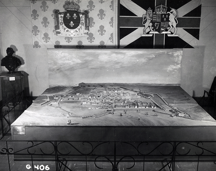 Item is a photograph of a model of the Fortress of Louisbourg on display in the Museum.