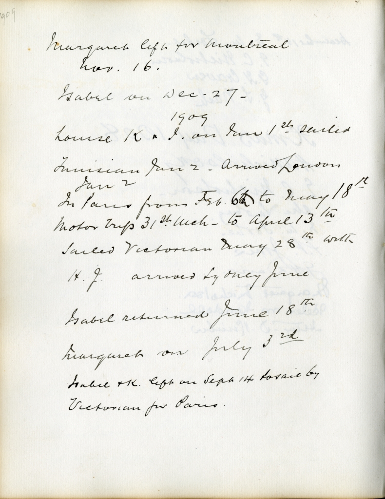Other notable pages in the guestbook include Isabel's wedding (page 106), the tragic death of Louise McLennan in 1912 (page 109), Margaret's wedding to future Lieutenant-Governor, Dr. Henry Ernest Kendall (page 113), the deaths of both son Hugh and J.S.'s brother Bart in battle during World War I (page 126). J.S. McLennan's death is noted in an elegant tribute written by Katharine on page 162.