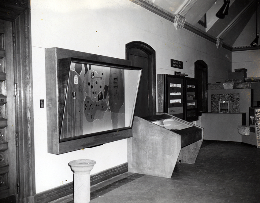 Item is a photograph of display cases in the Museum.