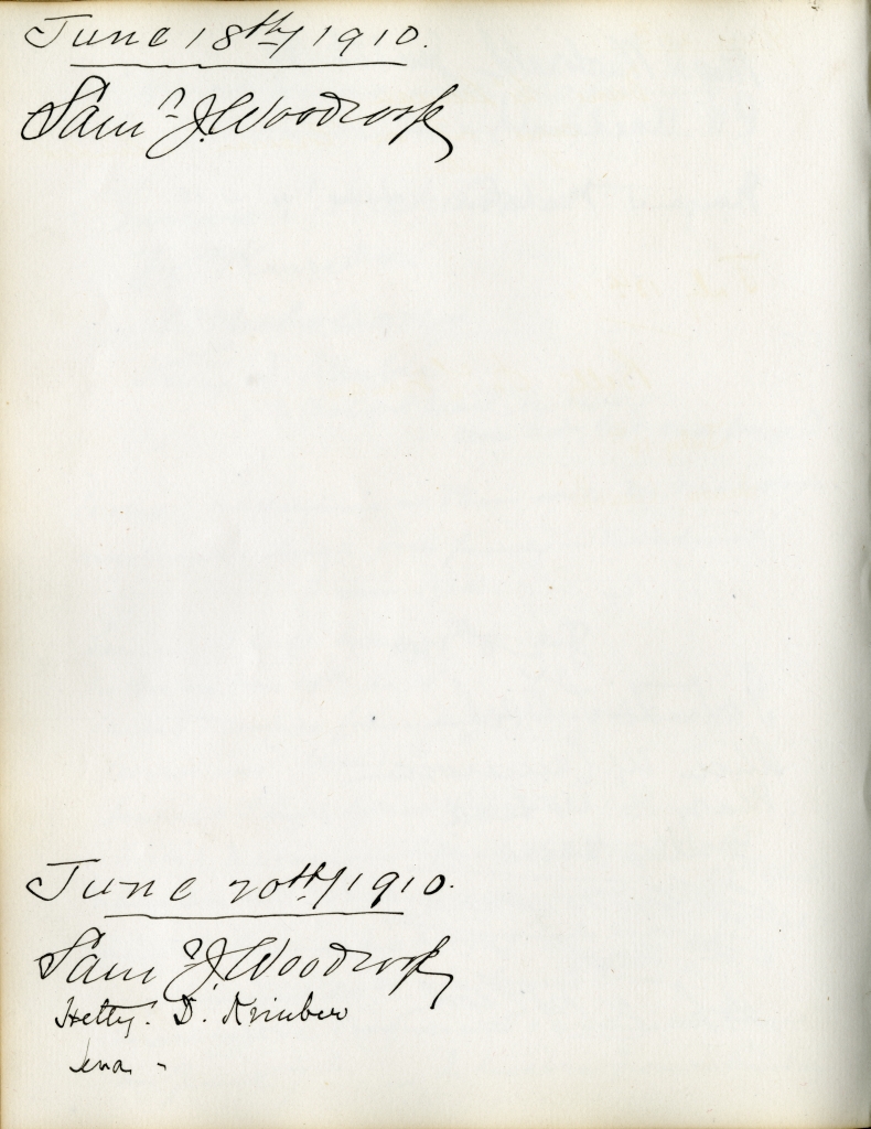 Item is the guestbook that was used at the Petersfield Estate, and later by Katharine at events on her home on Whitney Avenue, Sydney. In fact, Petersfield is most famous and historically interesting because of the guests who stayed there. Besides frequent local visitors like Hetty Kimber and her brother Fred, Shirley Davidson, the Burchells, the Sutherlands, the Grosvenors and visiting family members, the estate boasted visitors of international renown.